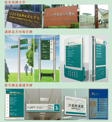 隨著社會體制的變化,辦學條件的提升,現(xiàn)在的教育機構教學樓,辦公檔,特別是一些大專院校,重點學校都開始引進標識標牌做為一個學校的形象而存在,廣州市民鑫廣告標識標牌工程有限公司可為您提供學校(教育機構)標識標牌導向系統(tǒng)的設計、生產制作及施工安裝服務。學校標識牌就其功能性主要包括以下方面,可供參考: